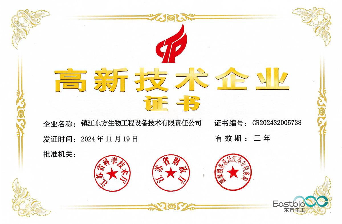 东方生工2024年顺利通过高新技术企业重新认定,高企证书已于近日下发到企业。